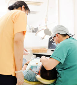 当院では院長以下複数の常勤歯科医師が診療にあたっておりますが、毎日診療終了後に、全ての方のカルテ、診療進行状況、 今後の予定等の確認を全員で行っています。いずれの歯科医が治療を担当しても、同じ信念を持って、最高の診療を心がけておりますので、 安心して診療をお受けいただくことができます。当院では次の事を行っています。